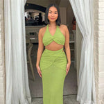 Product information: Pattern: solid color Color: green Size: S,M,L Style type: street fashion Skirt length: long skirt Popular elements: no back Fabric name: Polyester Sleeve type: sleeveless Main fabric composition:...