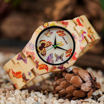 BOBO BIRD O20 Butterfly Print Women Watches All Bamboo Made Quartz Wristwatch for Ladies in Wooden Gift Box