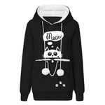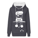 Casual Cat Print Hoodie With Big Pocket For Pets Long Sleeve Sweater Women Hooded Tops Clothes