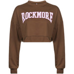 Harajuku Letter Printed Brown Cropped Sweatshirt Women Tops