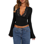Overview: Unique design, stylish and beautiful. Good material, comfortable wear. A variety of colors, any choice. Product information: Pattern: Solid color Style: Pullover Sleeve length: Long sleeves Process: Splicing Version: Slim-fit Length: Ordinary style Collar type: V-neck Sleeve type: horn sleeve Size...